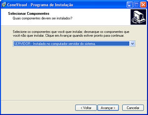 Passo 6) Tipo de instalação, no primeiro computador que o sistema for instalado é obrigatório que esteja selecionada a opção SERVIDOR, para os demais você irá instalar na opção CLIENTE. clique em AVANÇAR.