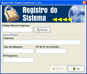 Passo 12) Realize o registro do sistema. Digite o código mestre da sua empresa ?????? (DEVE SER SOLICITADO POR E-MAIL CONFORME INSTRUÇÃO AO LADO) clique em PROCURAR depois em REGISTRAR.